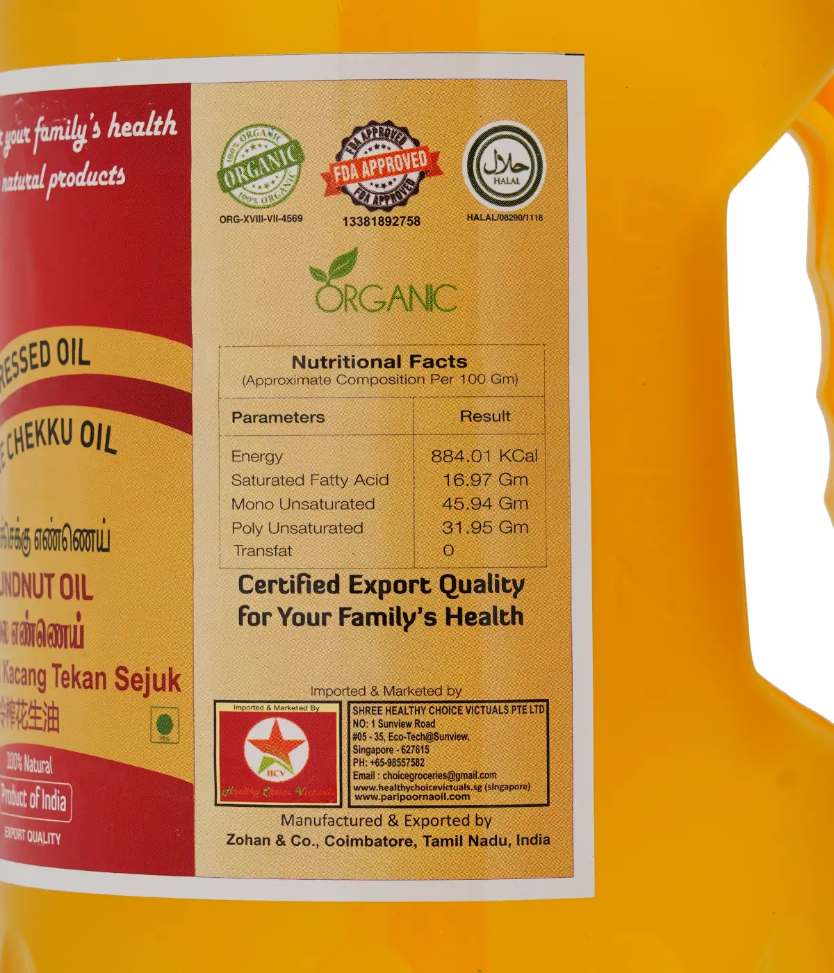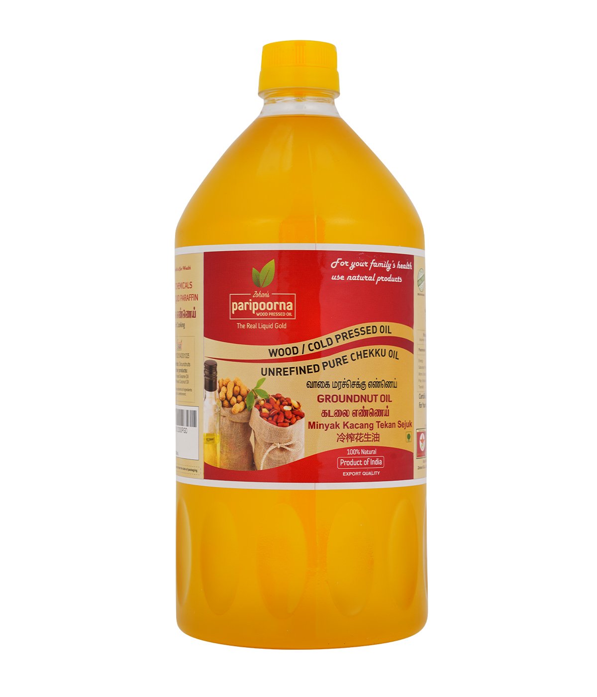 Sunlight dried quality groundnut / Peanut seeds are processed at lowest possible speed by using Wood/Cold pressed (Marachekku) method maintain least heat for RETAIN NUTRIENT VALUE. Our oils are hygienically filtered by using sunlight and there is NO REFINEMENT or PRESERVATIVES in it. Oils are produced least heat to ensure molecular structure is NOT compromised, retain antioxidant Vitamin E, monounsaturated fats that are useful to lower high blood pressure. It helps to prevent many stomachs disorders