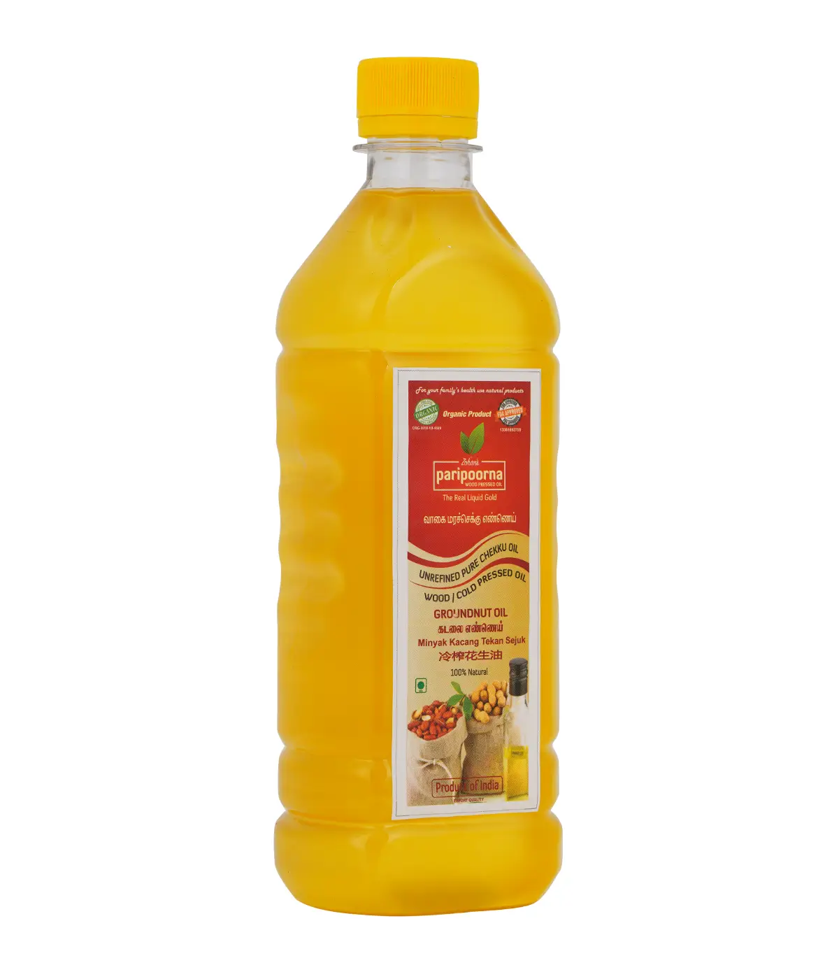 Sunlight dried quality groundnut / Peanut seeds are processed at lowest possible speed by using Wood/Cold pressed (Marachekku) method maintain least heat for RETAIN NUTRIENT VALUE. Our oils are hygienically filtered by using sunlight and there is NO REFINEMENT or PRESERVATIVES in it. Oils are produced least heat to ensure molecular structure is NOT compromised, retain antioxidant Vitamin E, monounsaturated fats that are useful to lower high blood pressure. It helps to prevent many stomachs disorders