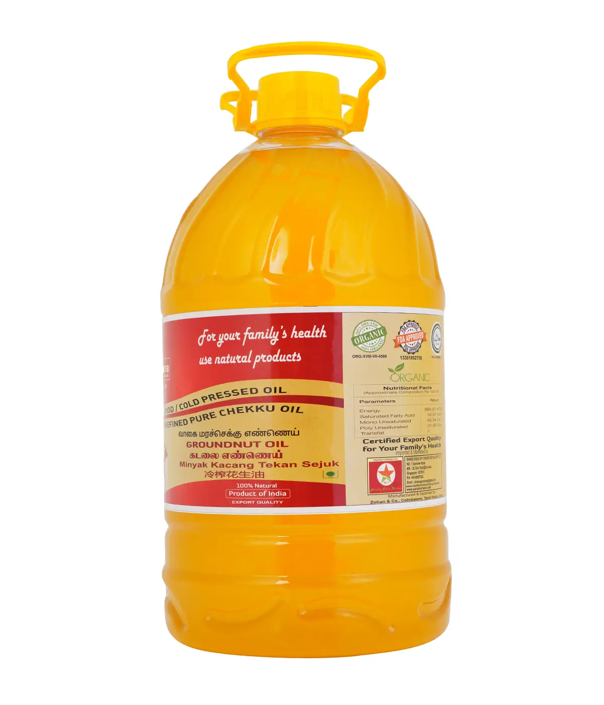 Sunlight dried quality groundnut / Peanut seeds are processed at lowest possible speed by using Wood/Cold pressed (Marachekku) method maintain least heat for RETAIN NUTRIENT VALUE. Our oils are hygienically filtered by using sunlight and there is NO REFINEMENT or PRESERVATIVES in it. Oils are produced least heat to ensure molecular structure is NOT compromised, retain antioxidant Vitamin E, monounsaturated fats that are useful to lower high blood pressure. It helps to prevent many stomachs disorders