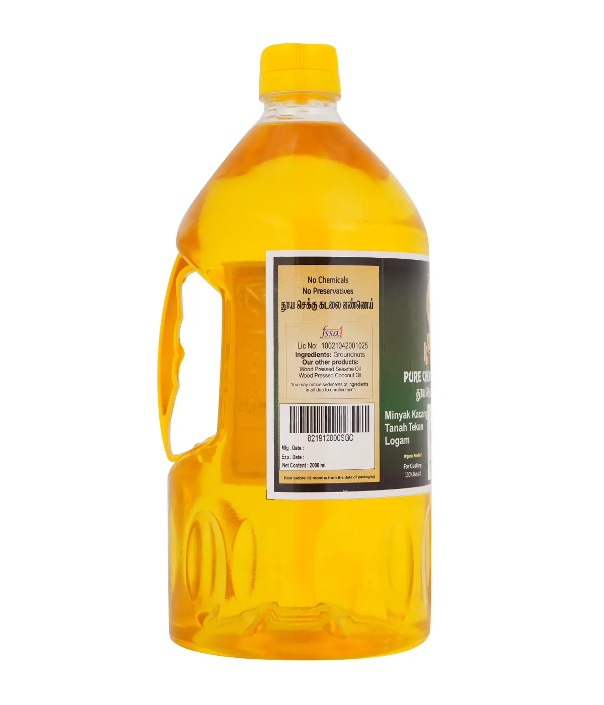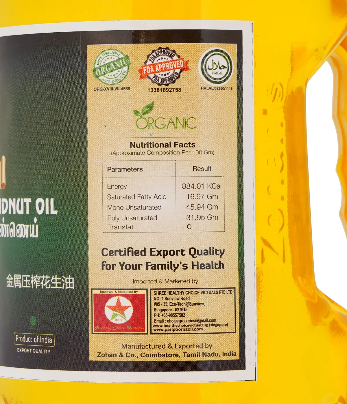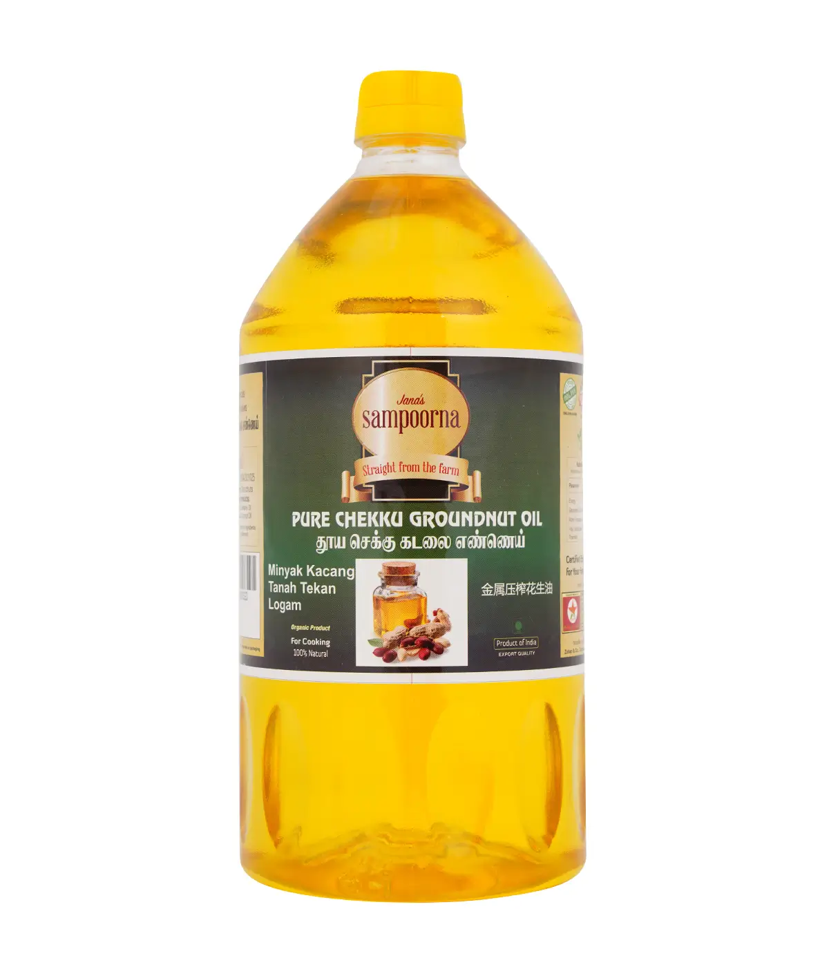 Metal Pressed Oils (Chekku / Ghani) Organic, Halal, FDA Certified Product for cooking. 100% Natural first quality groundnut/peanut seeds directly purchased from the farmers and hygienically extracted using traditional method and sunlight/single filtered oils Recommended for general cooking.