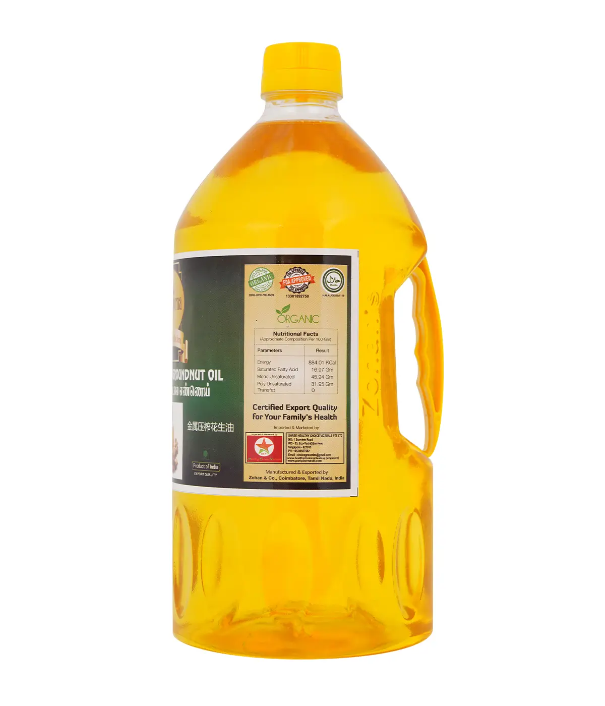 Golden, nutrient-rich groundnut oil made from select seeds. Perfect for daily cooking, offering natural flavor and complete safety when used as recommended.