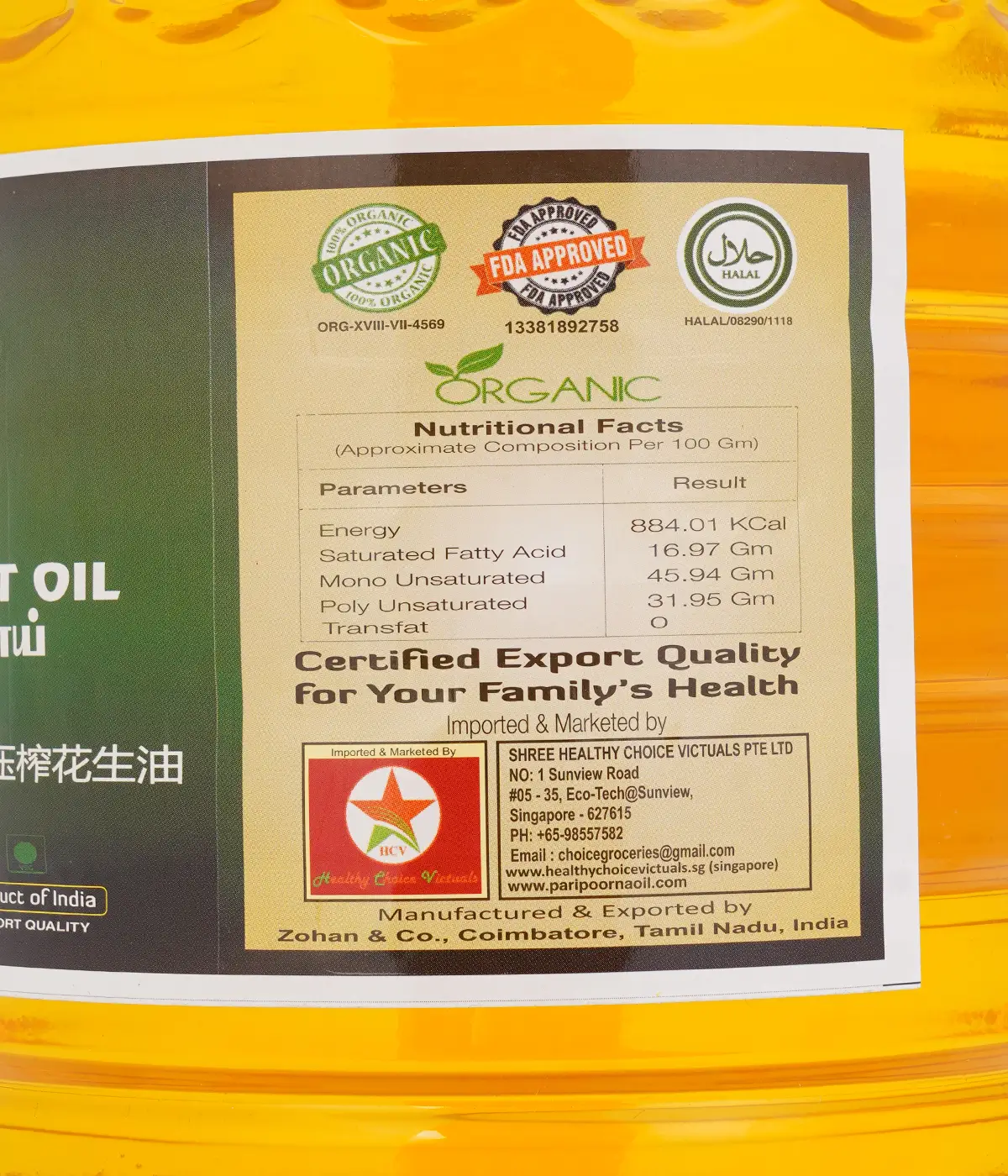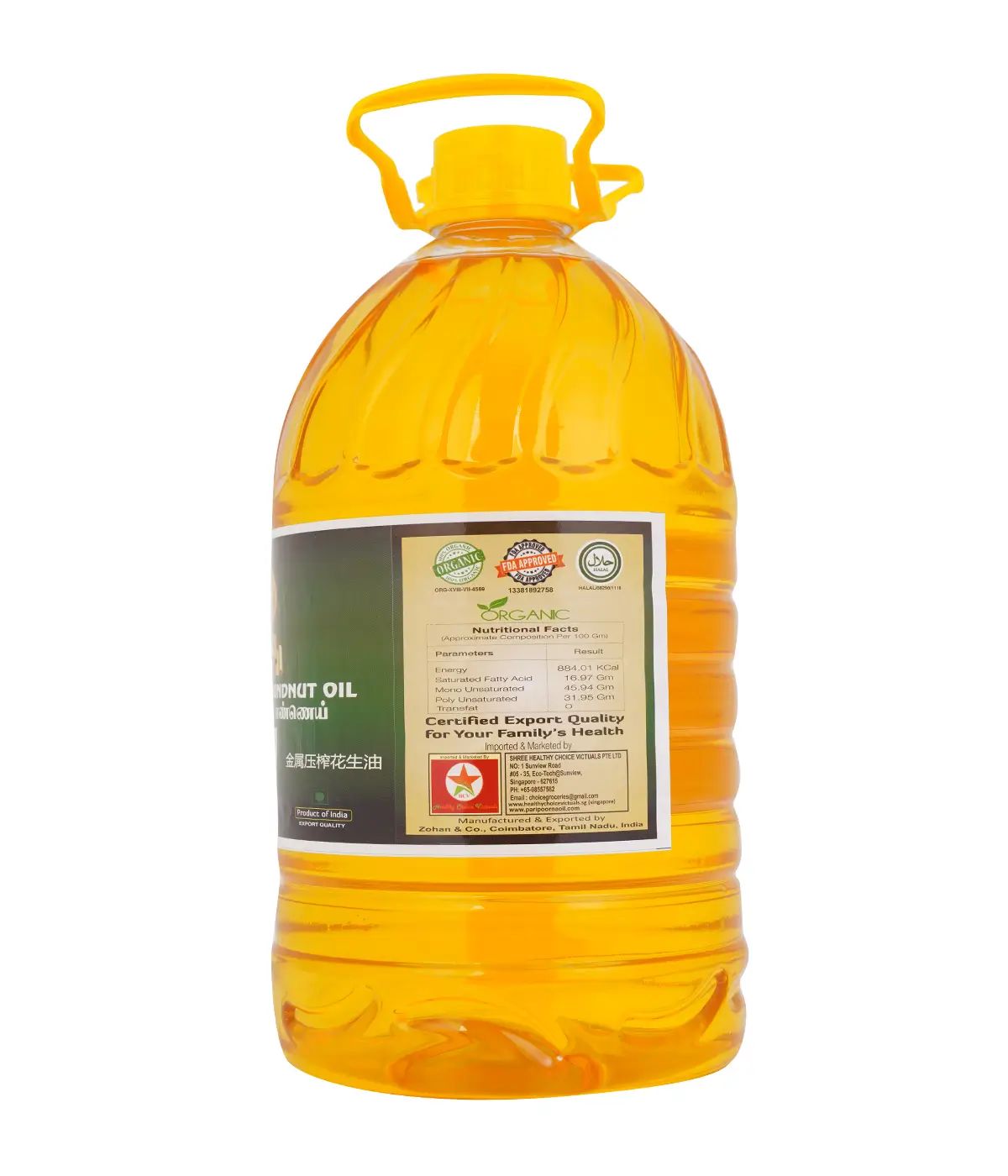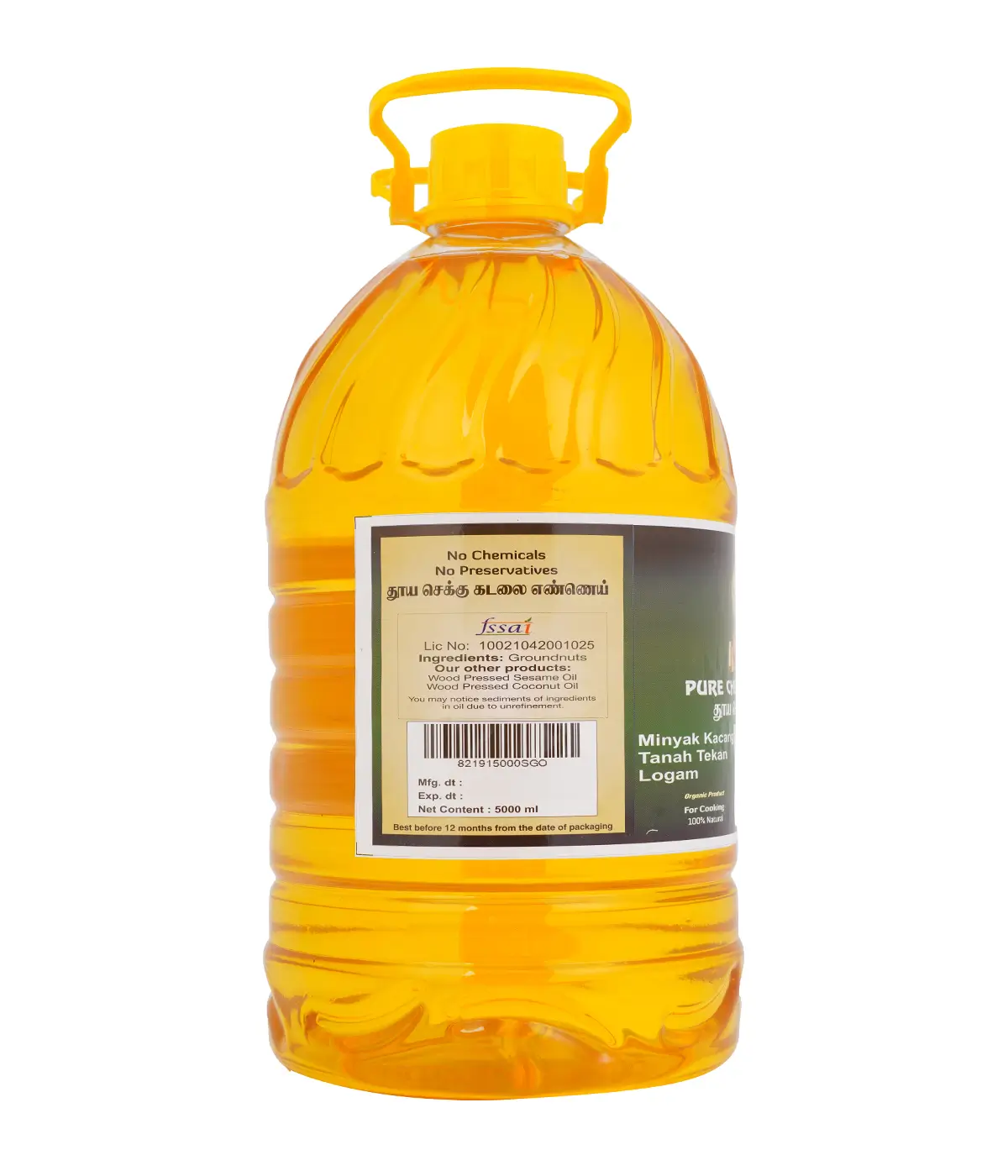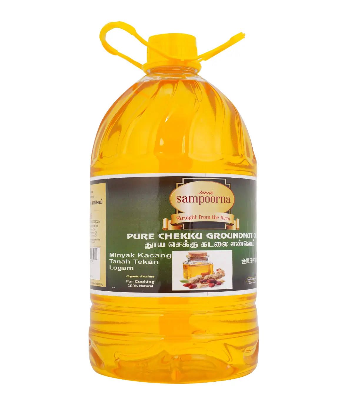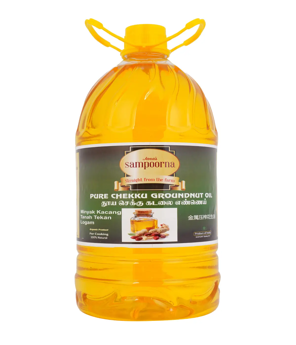Metal Pressed Oils (Chekku / Ghani) Organic, Halal, FDA Certified Product for cooking. 100% Natural first quality groundnut/peanut seeds directly purchased from the farmers and hygienically extracted using traditional method and sunlight/single filtered oils Recommended for general cooking.