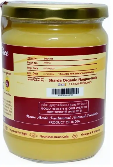 – Pure Organic Ghee made from native Indian breed country cow milk